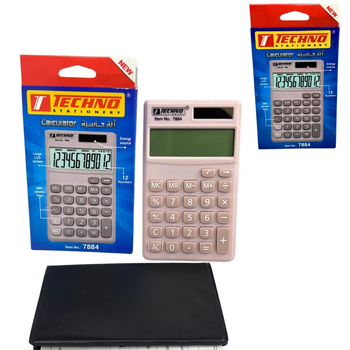 آلة حاسبة عملية بشاشة واضحة 12 رقم، تعمل بالطاقة المزدوجة (شمسية + بطارية)، مع أزرار مطاطية مريحة للاستخدام اليومي في المكتب والمدرسة.