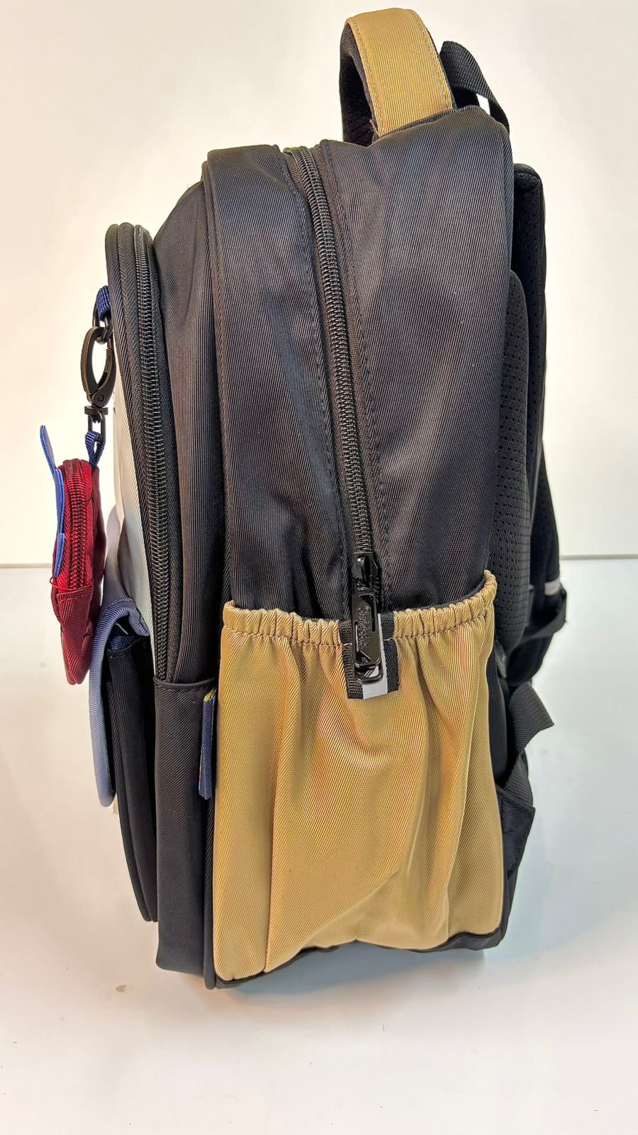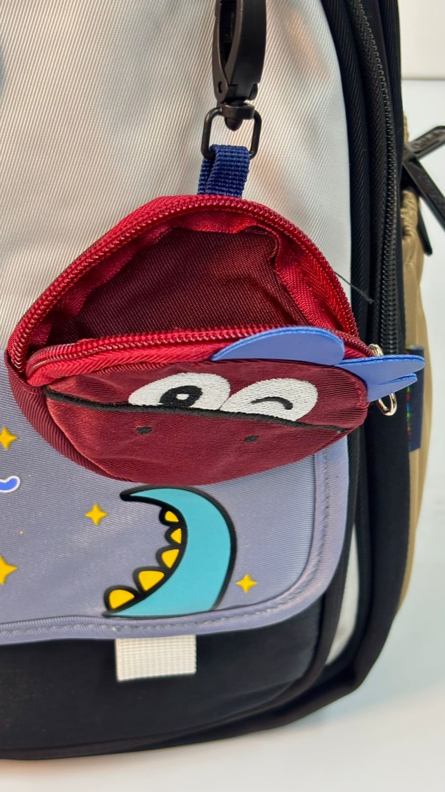 حقيبة أطفال مبهجة بتصميم ديناصور كرتوني لطيف، مع حقيبة صغيرة إضافية على شكل ديناصور أحمر للملحقات. تجمع بين المرح والعملية، بسعة مناسبة للكتب والأدوات المدرسية، وخامات متينة تناسب الاستخدام اليومي للصغار.