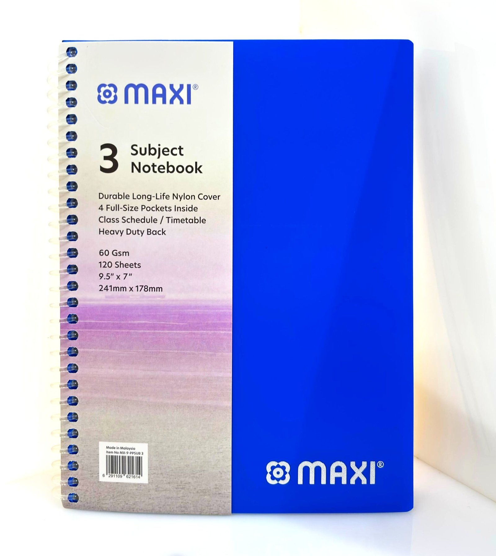 دفتر حلزوني عالي الجودة مخصص لتغطية 3 مواد أو مواضيع مختلفة.
