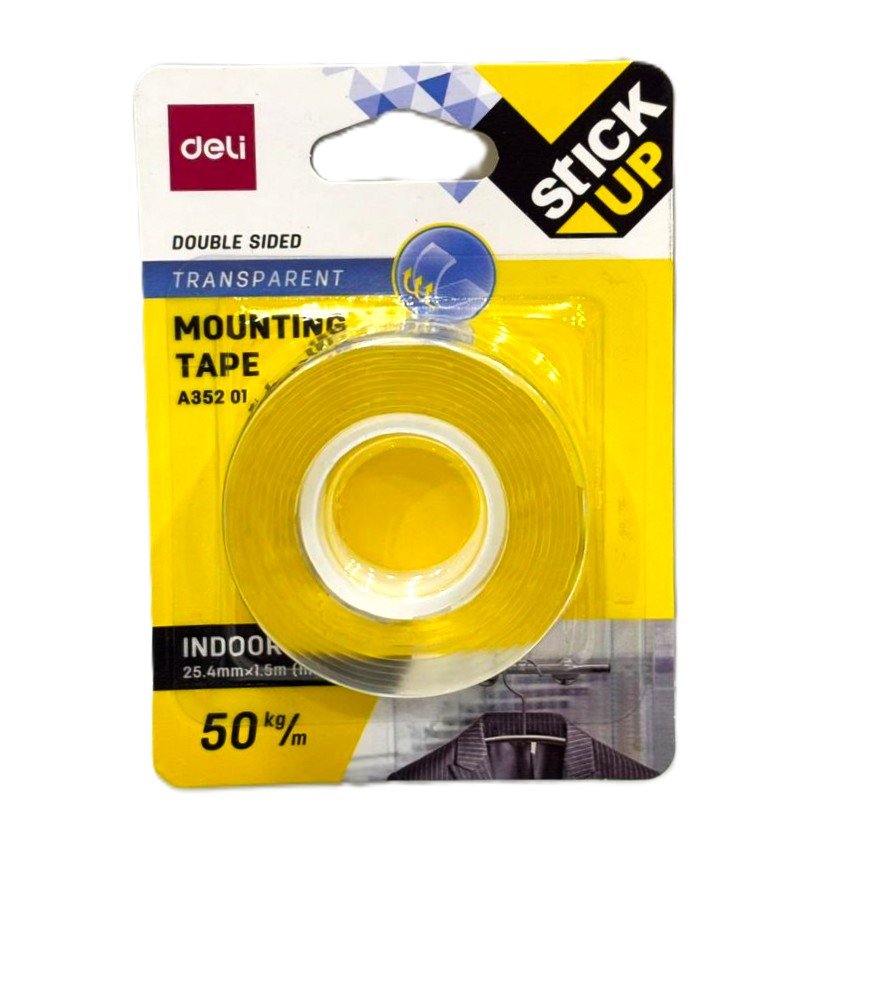 شريط تثبيت مزدوج الوجه (Deli Mounting Tape – 25.4mm x 5m):