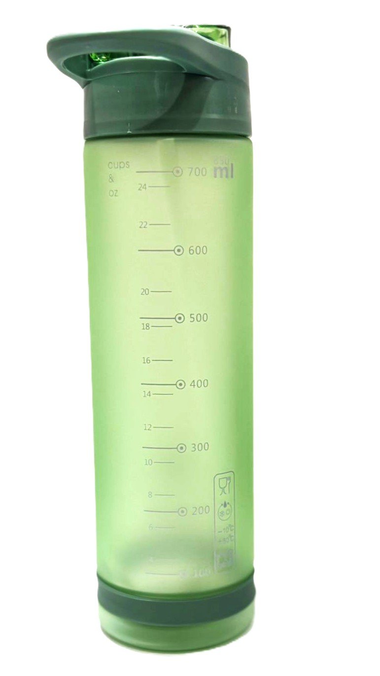 قارورة ماء رياضية بسعة 850 مل، مصنوعة من مادة بلاستيكية قوية وآمنة. مزودة بمقياس شفاف على الجانب لتحديد الكمية بالمليلتر (حتى 850 مل) والأوقية (حتى 24 أوقية)، وتتحمل درجات حرارة من -10°C إلى +80°C، مما يجعلها مناسبة للمشروبات الباردة والدافئة. تصميم عملي مع غطاء محكم وفوهة للشرب، مثالية للرياضيين، الطلاب، أو للاستخدام اليومي