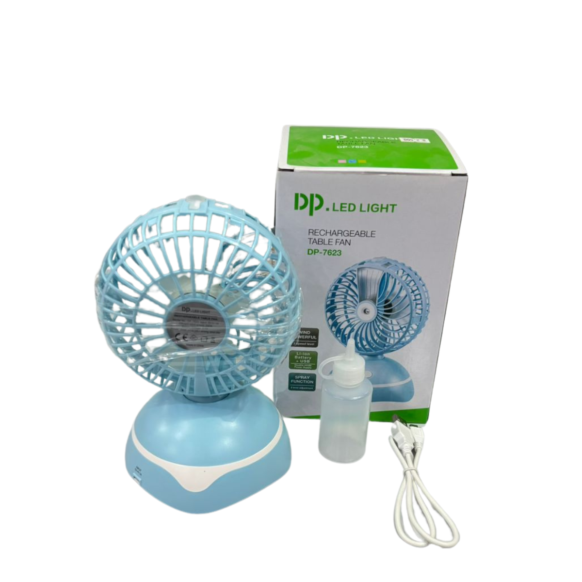مروحة مكتبية قابلة للشحن مع بخاخ (DP LED Light Rechargeable Table Fan)