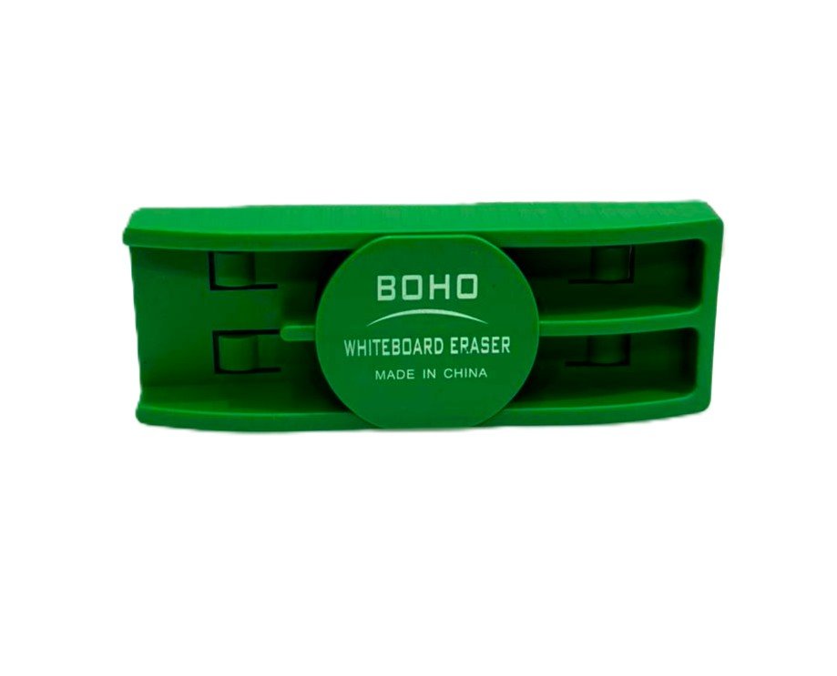 مساحة احترافية من ماركة BOHO، بسطح ناعم وألوان متنوعة (أسود – أخضر – أحمر)، مثالية لتنظيف السبورة البيضاء بسهولة وسرعة.